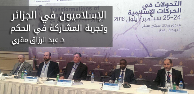 الإسلاميون في الجزائر وتجربة المشاركة في الحكم، بحث قدّمه الدكتور عبد الرزاق مقري خلال ندوة “التحولات في الحركات الإسلامية”